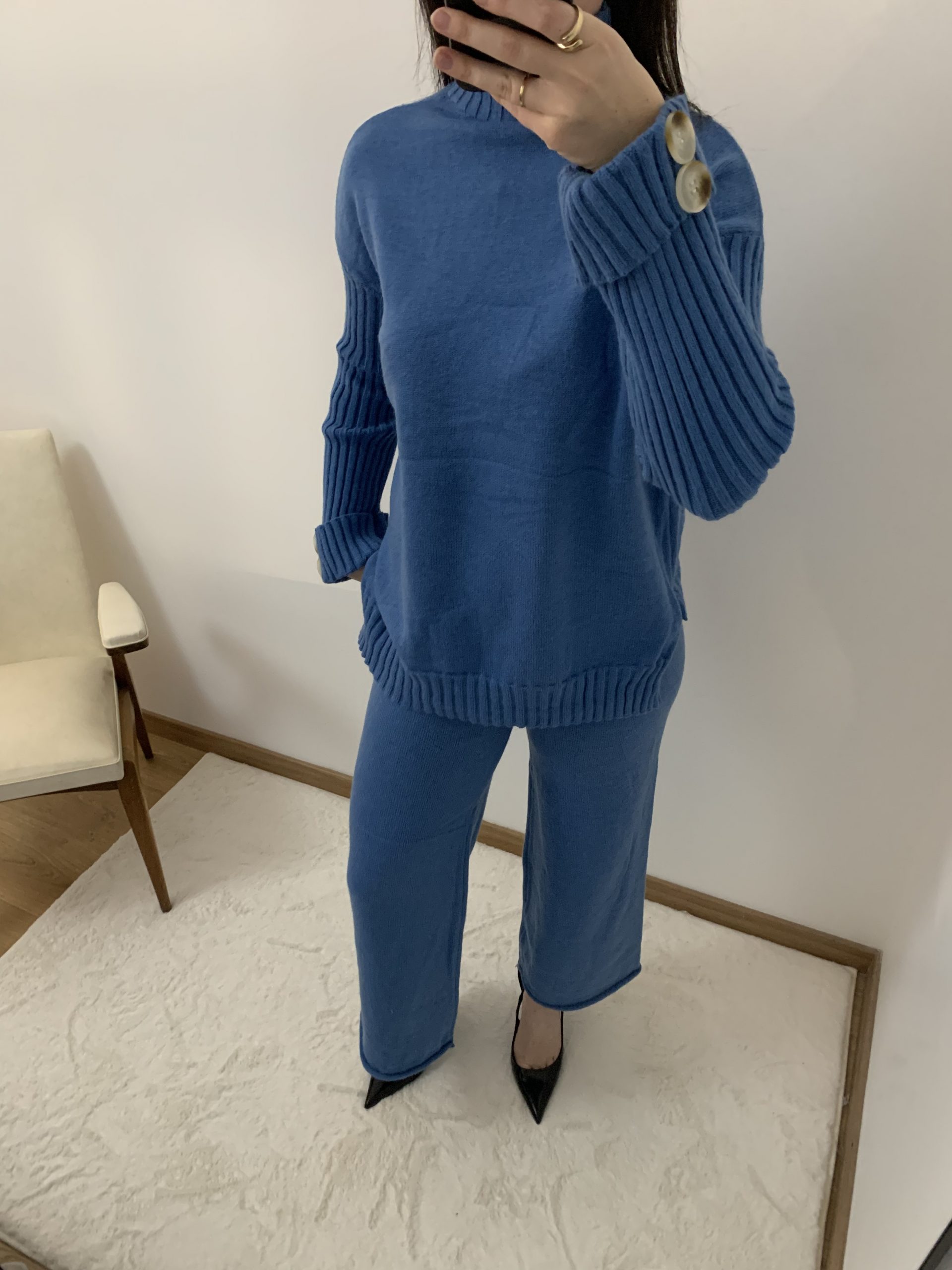Laissez-vous envelopper par la douceur et l’élégance de notre ensemble Néva. Parfait pour affronter les journées fraîches avec style, il associe une maille douce et chaude à une coupe raffinée. Son col roulé apporte une touche chic intemporelle, tandis que ses gros boutons sur les manches ajoutent une note d’originalité et de sophistication.